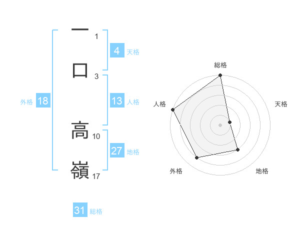 一口 高嶺さんの外格は18画の4点!