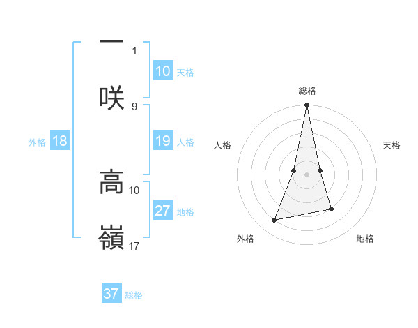 一咲 高嶺さんを姓名の画数から五運を鑑定