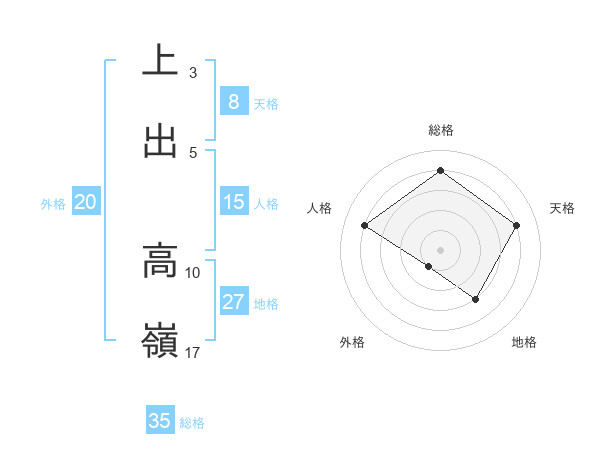 上出 高嶺さんを姓名の画数から五運を鑑定