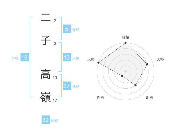 二子 高嶺さんの総格は32画の5点!
