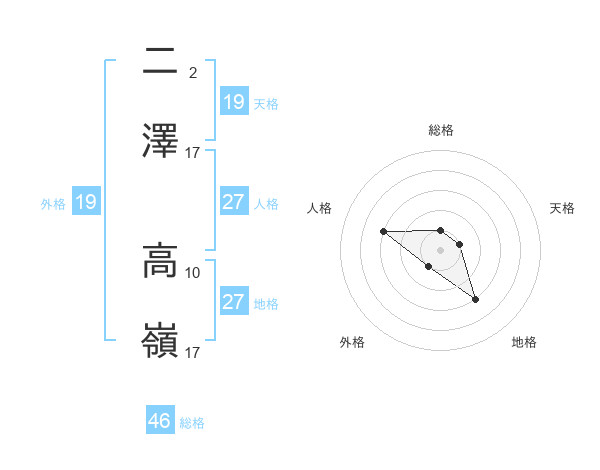 二澤 高嶺さんの地格は27画の3点!