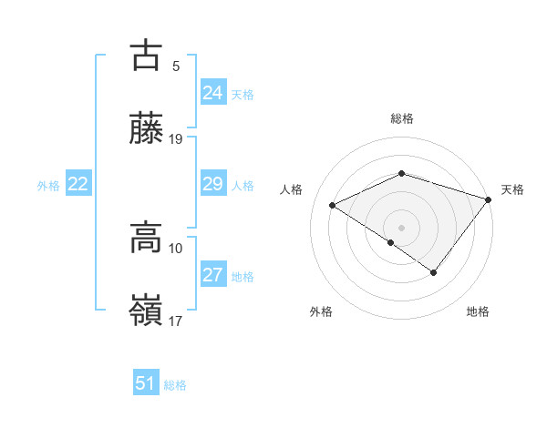 古藤 高嶺さんを姓名の画数から五運を鑑定