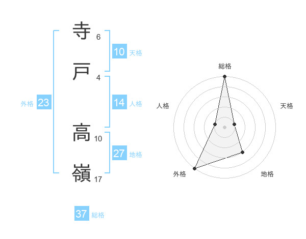 寺戸 高嶺さんの総格は37画の5点!
