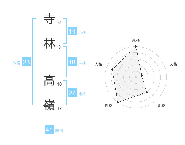 寺林 高嶺さんを姓名の画数から五運を鑑定