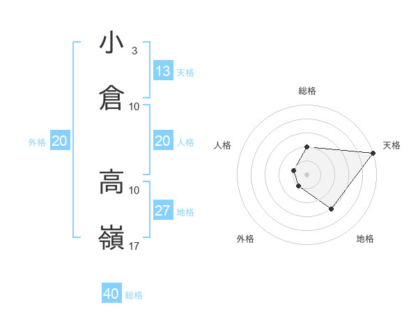 小倉 高嶺さんの天格は13画の5点!