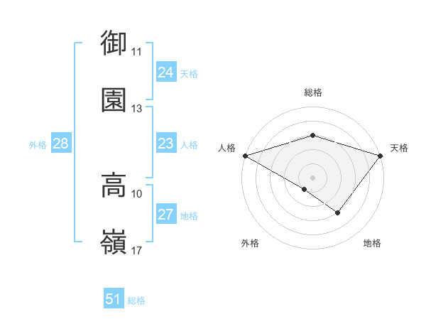 御園 高嶺さんを姓名の画数から五運を鑑定