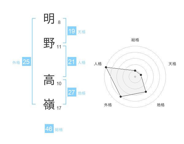 明野 高嶺さんの人格は21画の5点!
