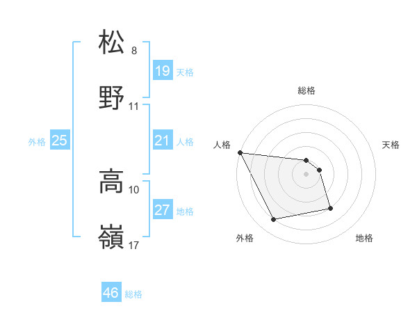 松野 高嶺さんを姓名の画数から五運を鑑定