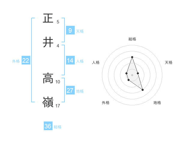 正井 高嶺さんを姓名の画数から五運を鑑定