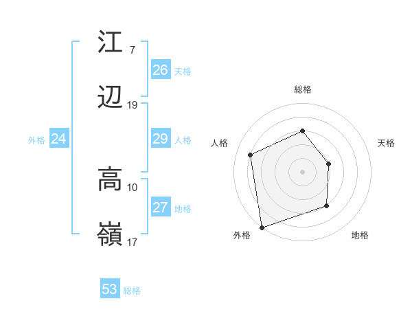 江辺 高嶺さんを姓名の画数から五運を鑑定