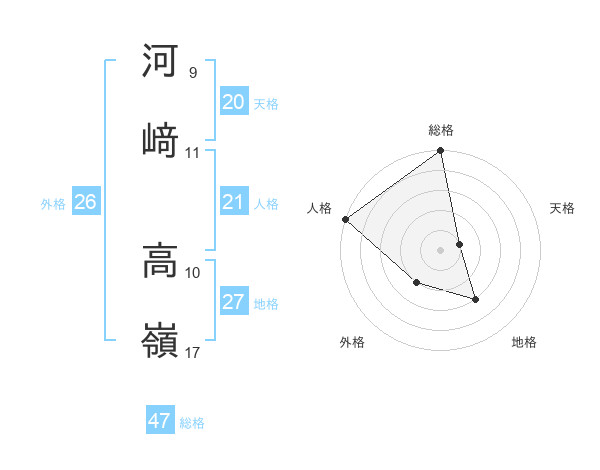 河﨑 高嶺さんの総格は47画の5点!