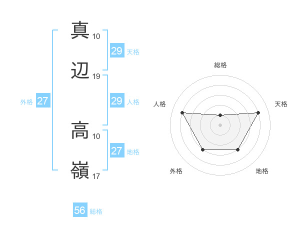 真辺 高嶺さんの外格は27画の3点!