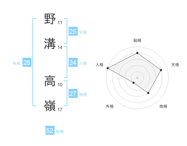 野溝 高嶺さんの外格は28画の1点!