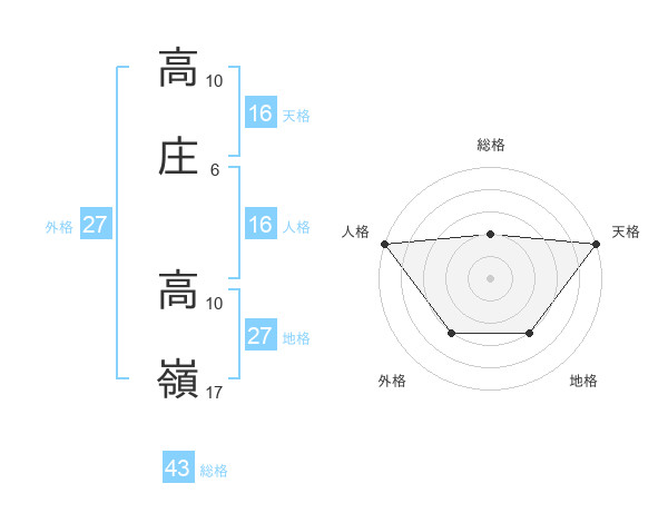 高庄 高嶺さんを姓名の画数から五運を鑑定