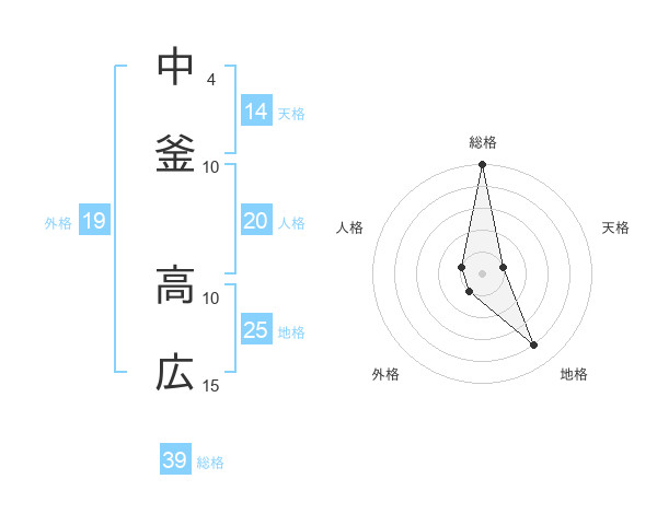 中釜 高広さんの総格は39画の5点!