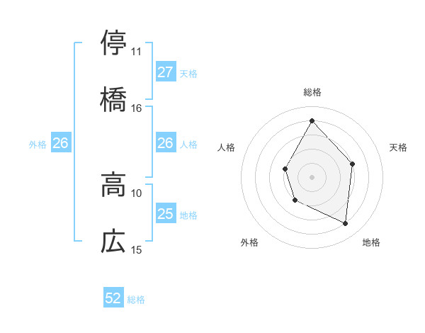 停橋 高広さんの総格は52画の4点!