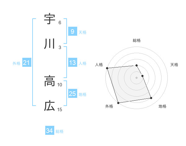 宇川 高広さんの外格は21画の5点!