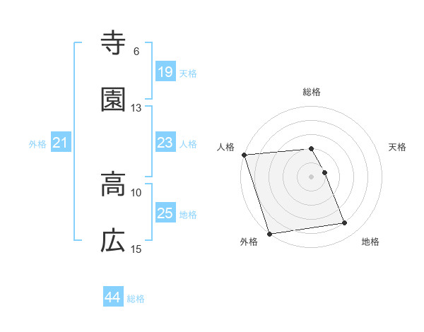 寺園 高広さんの総格は44画の2点!