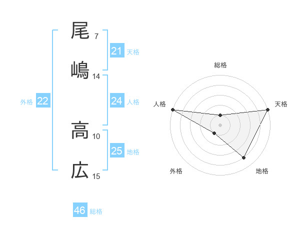 尾嶋 高広さんの総格は46画の1点!