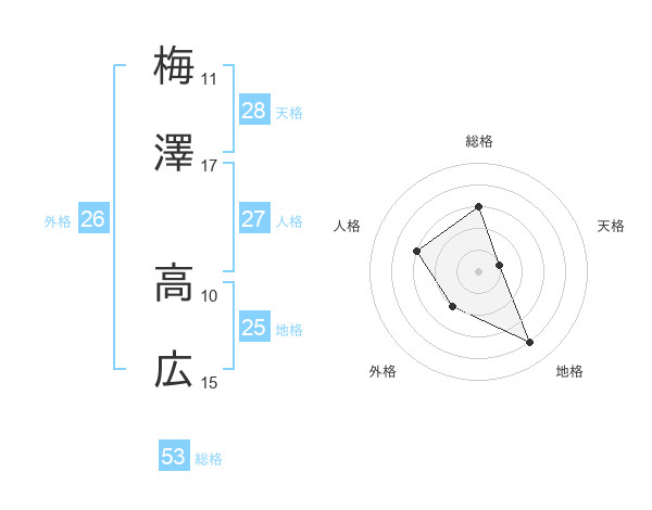 梅澤 高広さんを姓名の画数から五運を鑑定