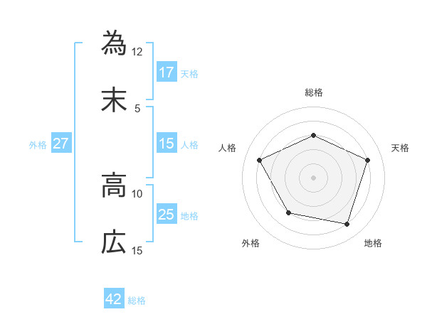 為末 高広さんの天格は17画の4点!