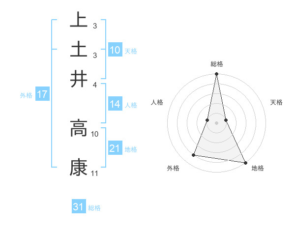 上土井 高康さんの総格は31画の5点!