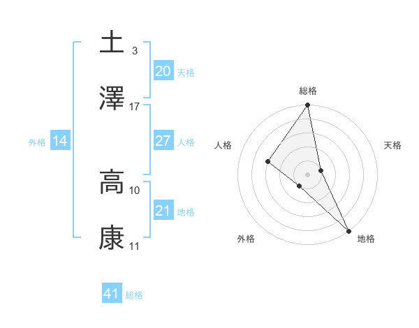 土澤 高康さんの総格は41画の5点!