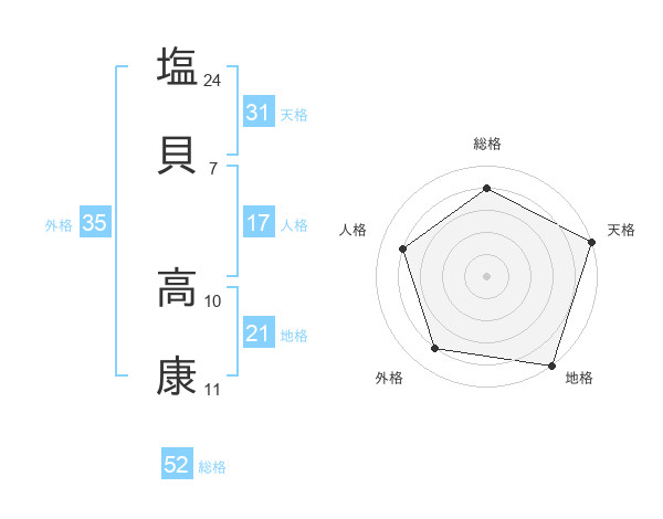 塩貝 高康さんを姓名の画数から五運を鑑定