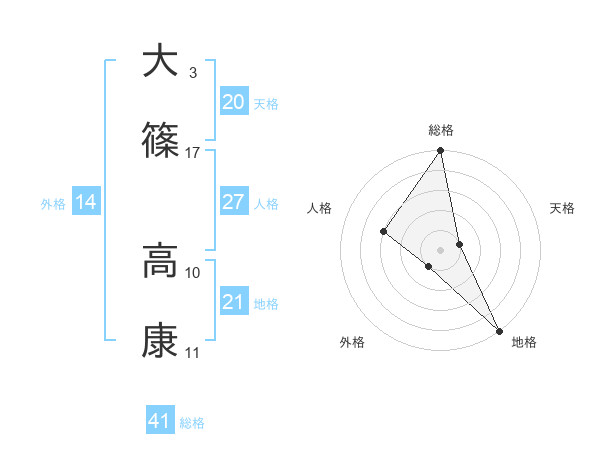 大篠 高康さんの天格は20画の1点!
