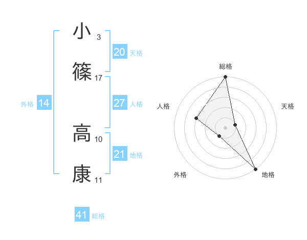小篠 高康さんの総格は41画の5点!