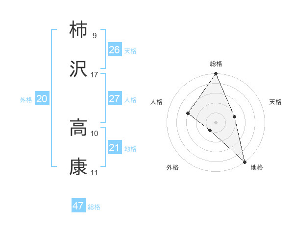 柿沢 高康さんの総格は47画の5点!