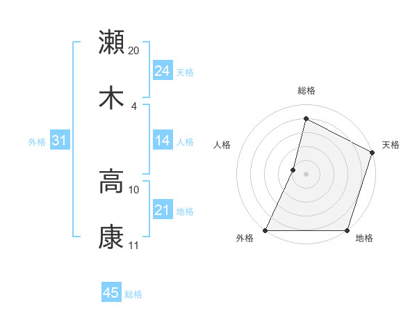 瀬木 高康さんの総格は45画の4点!