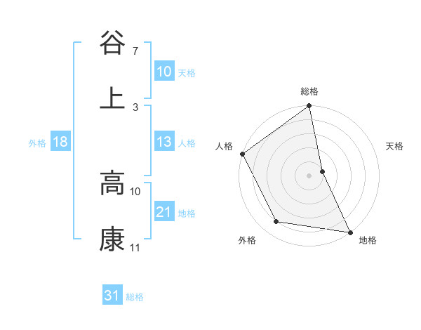 谷上 高康さんの総格は31画の5点!