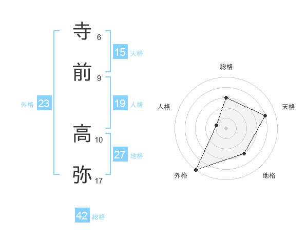 寺前 高弥さんの外格は23画の5点!