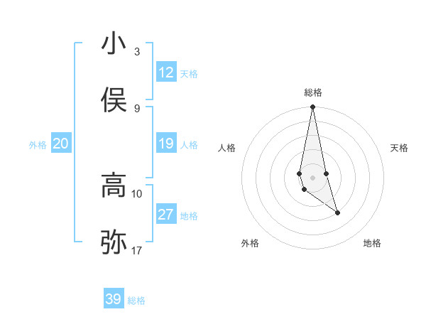 小俣 高弥さんを姓名の画数から五運を鑑定