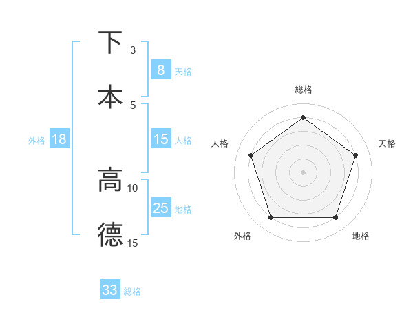 下本 高德さんの総格は33画の4点!