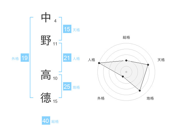 中野 高德さんの総格は40画の2点!
