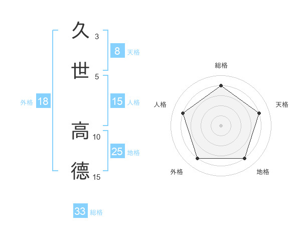久世 高德さんの総格は33画の4点!