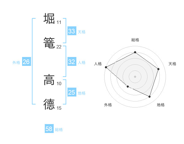 堀篭 高德さんを姓名の画数から五運を鑑定