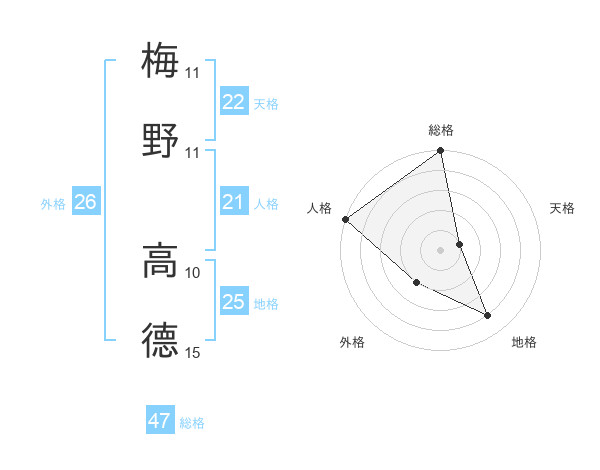梅野 高德さんの総格は47画の5点!