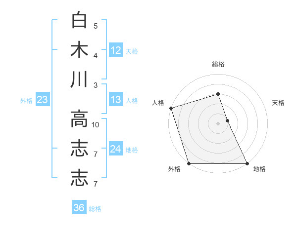 白木川 高志志さんを姓名の画数から五運を鑑定