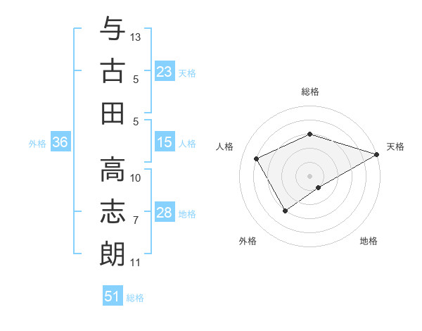 与古田 高志朗さんを姓名の画数から五運を鑑定