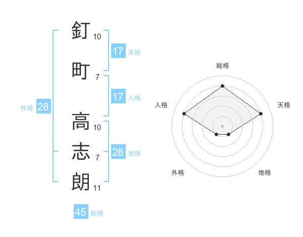釘町 高志朗さんの総格は45画の4点!