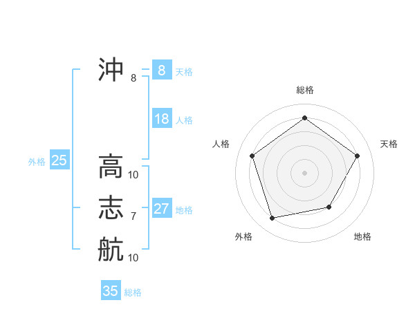 沖 高志航さんの総格は35画の4点!