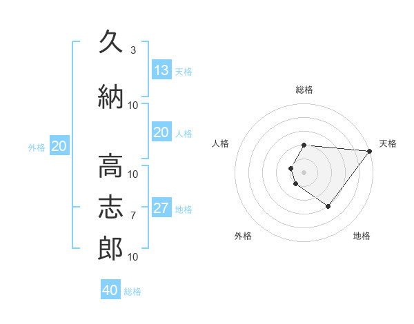 久納 高志郎さんを姓名の画数から五運を鑑定