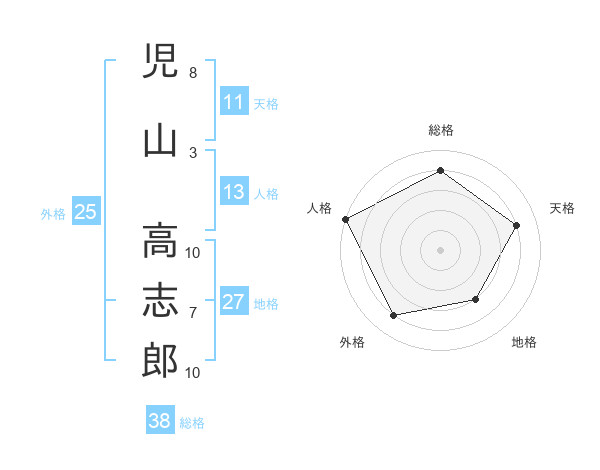 児山 高志郎さんの総格は38画の4点!
