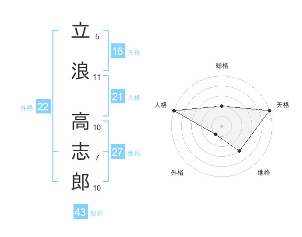 立浪 高志郎さんの天格は16画の5点!