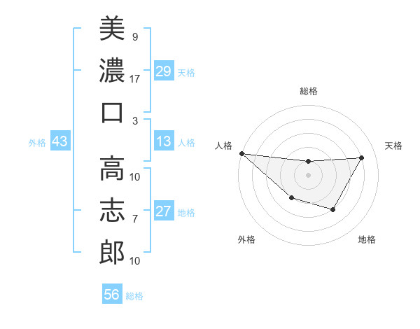 美濃口 高志郎さんを姓名の画数から五運を鑑定