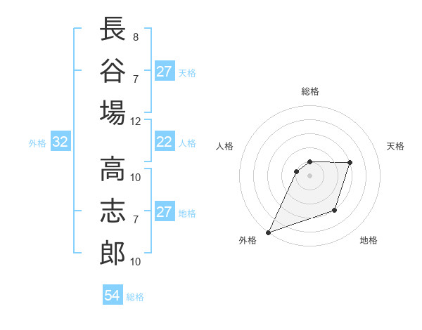 長谷場 高志郎さんを姓名の画数から五運を鑑定