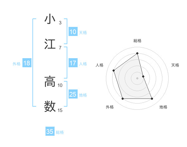 小江 高数さんの総格は35画の4点!
